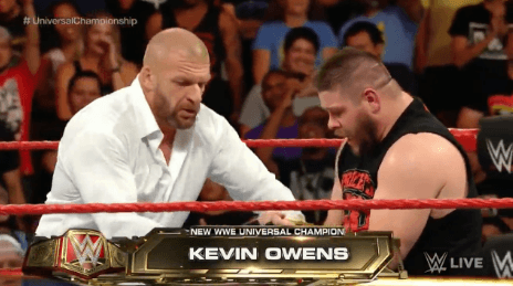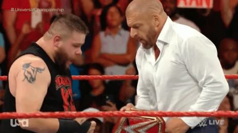 영문도 모른 채 트리플 H의 도움을 받은 케빈 오웬스는