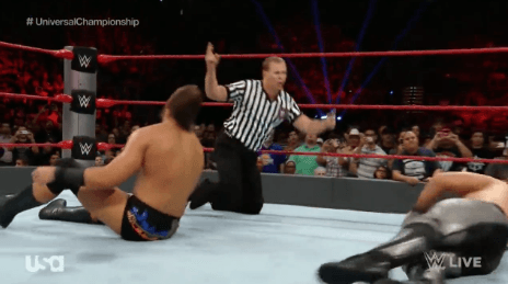 곧바로 세스 롤린스를 커버해 3 카운트를 따내게 된다.