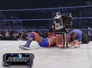 토네이도 DDT 시도 도중 타지리가 카운터를 당하지만