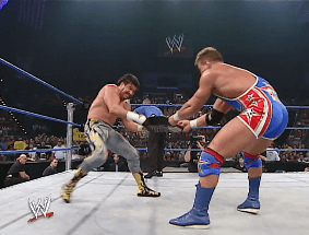 에디 게레로의 공격을 피하고 벨트를 빼앗으려는데