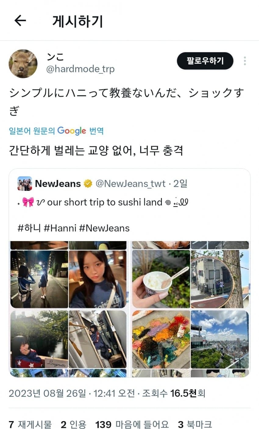 일본을 스시국이라고 했다가 폭풍 까이는 중