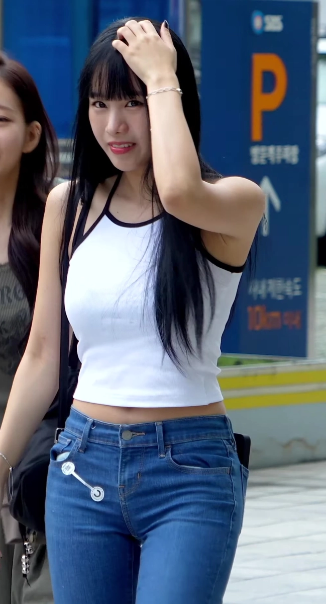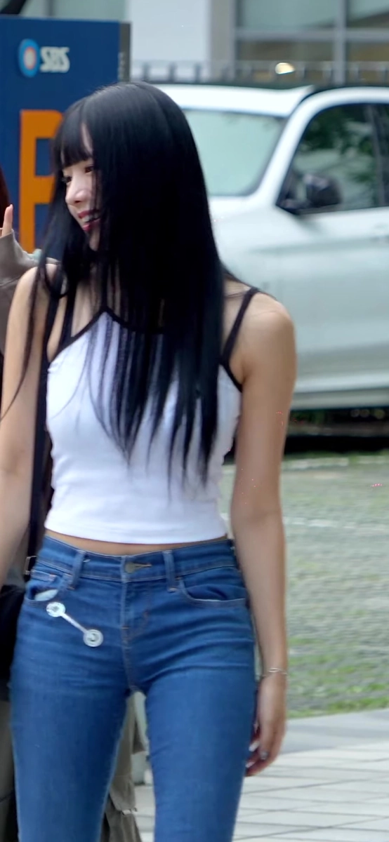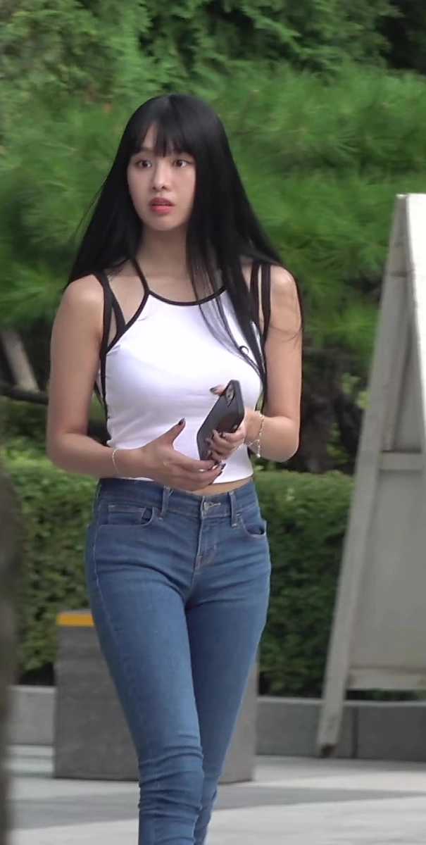 하얀 나시에 청바지 입은 나띠