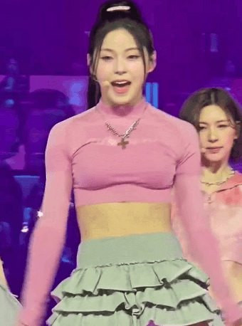 분홍 크롭티 엔믹스 규진