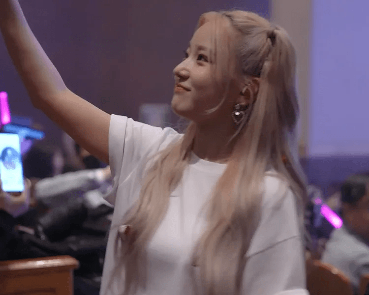 눈웃음이 귀엽고 염색머리가 잘 어울리는 메이딘의 메인보컬 수혜